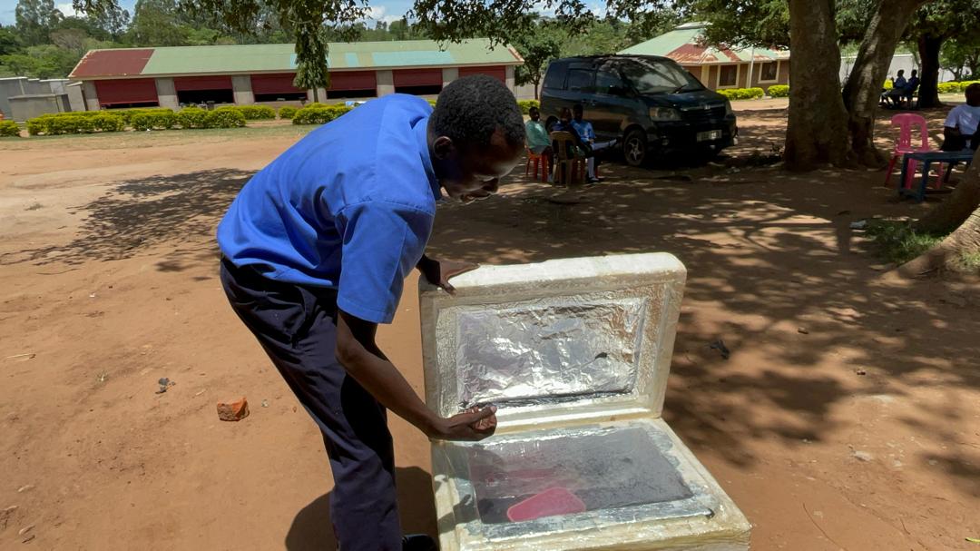 That was only the beginning. Okwir also showcased a solar oven capable of heating water and cooking food—an innovation he says will protect the environment, save time, and reduce reliance on charcoal and firewood.