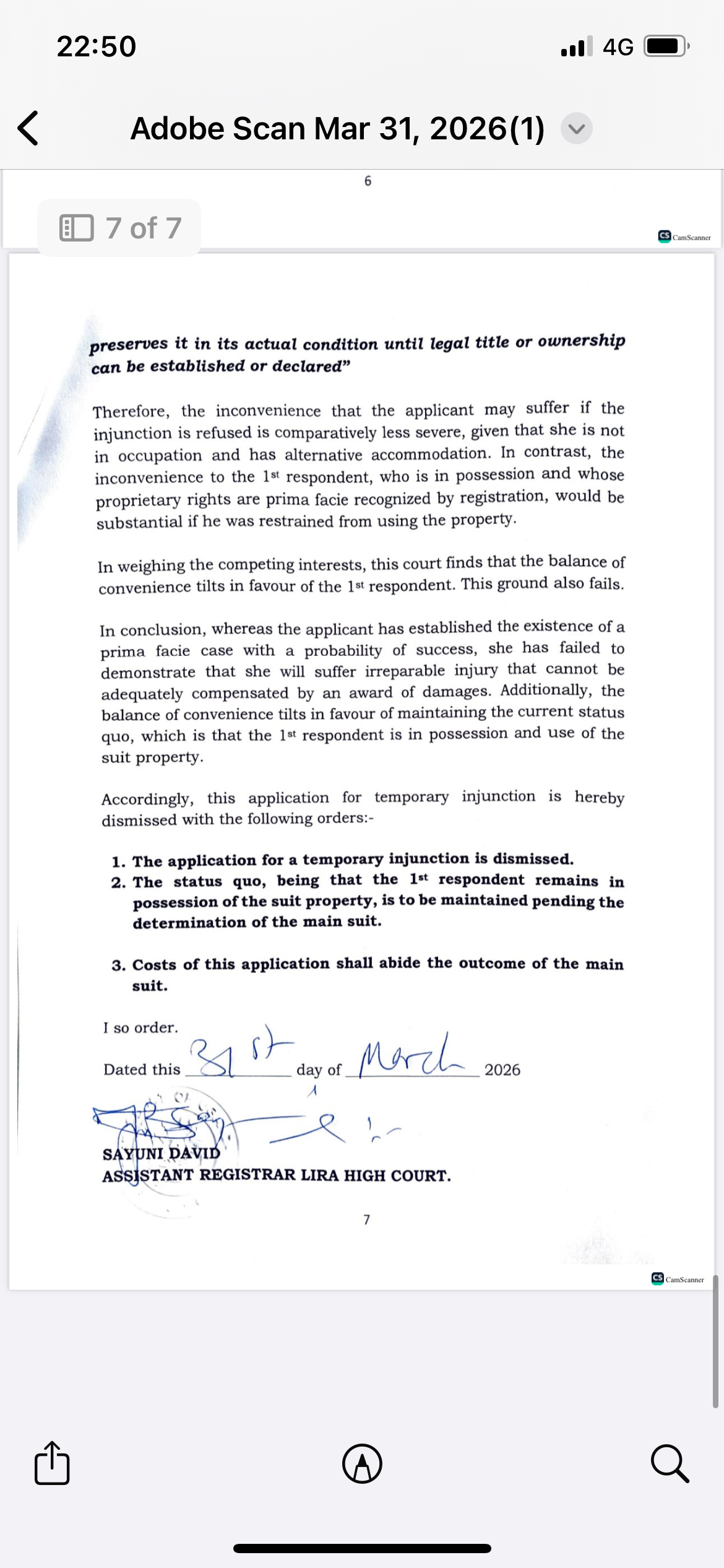 Assistant Registrar Sayuni David delivered the ruling on March 31, 2026, in Miscellaneous Application No. 24 of 2025, arising from Land Claim No. 15 of 2025.